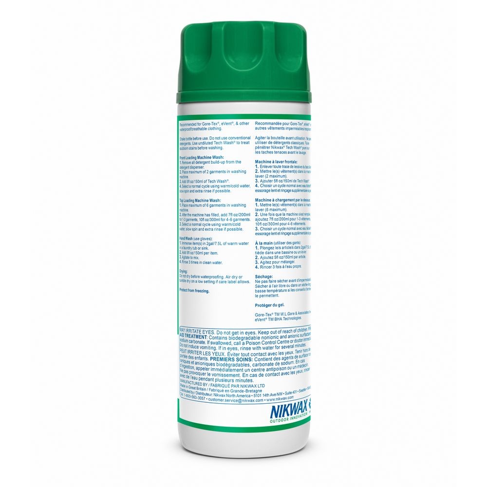 Nikwax Tech Wash safely revitalizes breathability and water-repellency in technical outdoor outerwear such as dry suits, dry tops, splash wear, jackets, ski wear and more.
