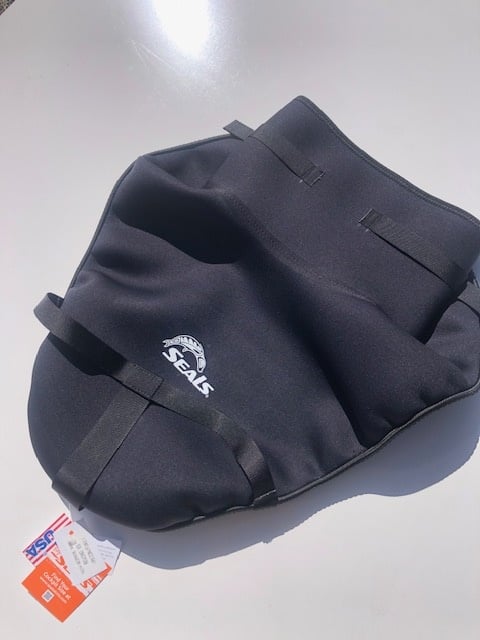 Custom made Seals Youth Neoprene Skirt. Fits a Dagger Rewind XS, Dagger Axiom XS, or JK Fun 1, and Pyranha Rebel. Features an adjustable waist, an easy release bungee with deck pull strap for added safety.